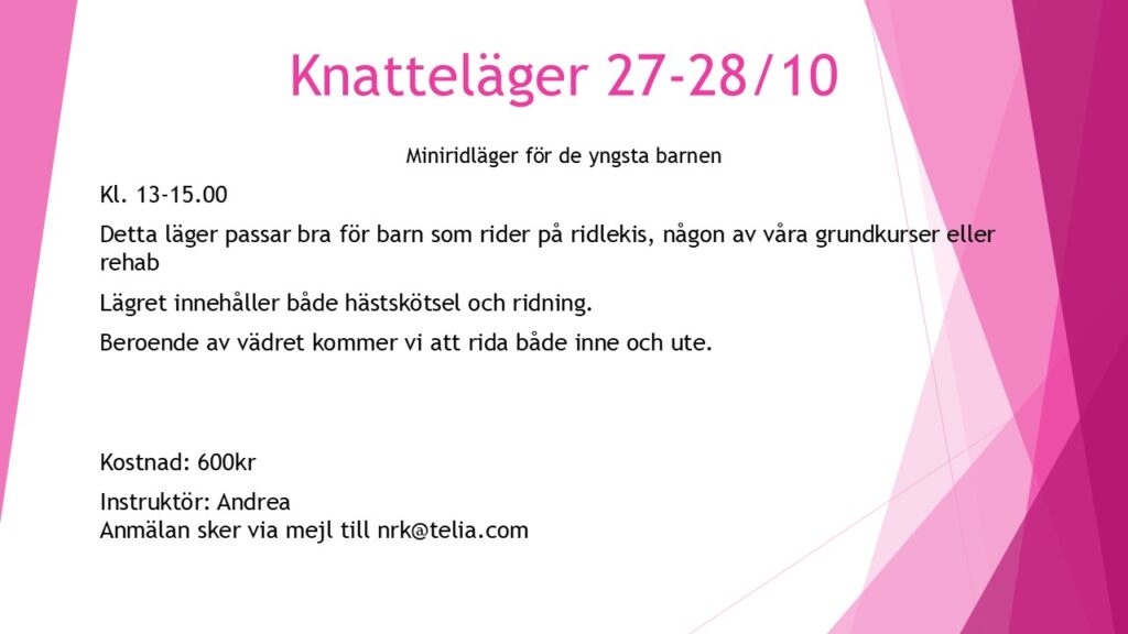 Detta läger passar bra för barn som rider på ridlekis, någon av våra grundkurser eller rehab